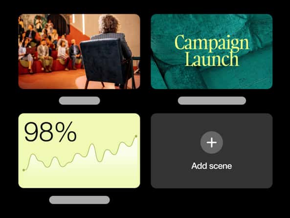 Energize the experience with multi-dimensional layouts and formats. Incorporate videos, images, speakers, overlays, and more — all in one scene.