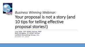 Your proposal is not a story (and 10 tips for telling effective proposal stories!) | Lohfeld Consulting Business Winning Webinar