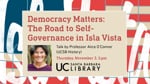 On November 8, Isla Vista residents participated in a historic vote determining the future of self-governance in the community. Ballot initiatives E and F weighed in on proposals to create a new Community Services District with an elected board, and a utility tax to empower it to provide locally-controlled services. Prior to the vote, UCSB Professor of History, Alice O'Connor spoke about the issues, debates, and traditions of community-based activism that brought Isla Vista to their decision about their political future, and what was at stake in the vote by drawing on extensive historical holdings and the contemporary scene.