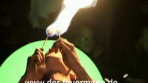 Feuer spucken mit brennenden Händen