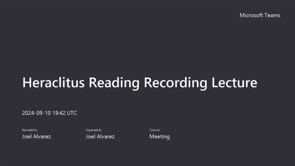 Recorded Lecture on the Heraclitus Reading