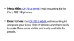 Get CP-7811-WMK wall mounting kit and place your Cisco 7811 IP phones anywhere easily to make them more visible and easily available for people. Buy now: https://www.procurepod.com/cp-7811-wmk.html