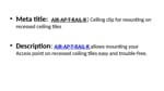 AIR-AP-T-RAIL-R allows mounting your Access point on recessed ceiling tiles easy and trouble-free. Buy now: https://www.procurepod.com/cisco-mounting-clip-air-ap-t-rail-r.html