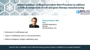 Implementation of Biopreservation Best Practices to address a critical component of cell and gene therapy manufacturing