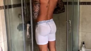 Lewis Flint takes a shower in King Fit Box Menswear Boxer Shorts
