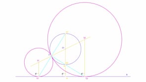 Circunferencias tangentes a recta y circunferencia dadas en un punto determinado de la circunferencia