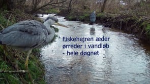 Fiskehejren æder ørreder i vandløb